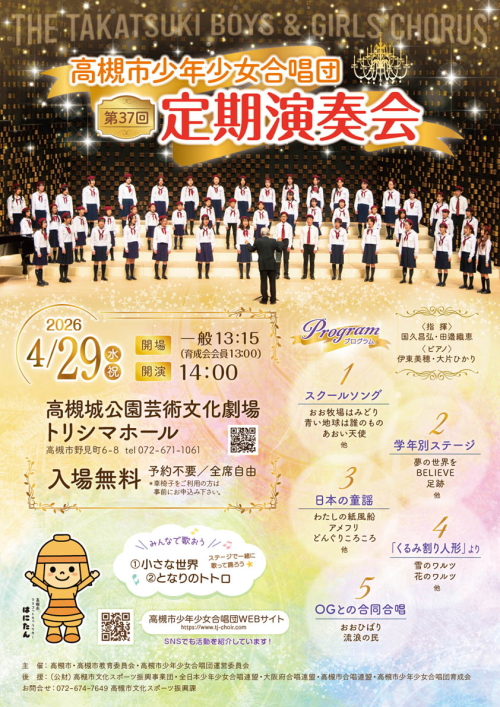 後援:(公財)高槻市文化スポーツ振興事業団 全日本少年少女合唱連盟